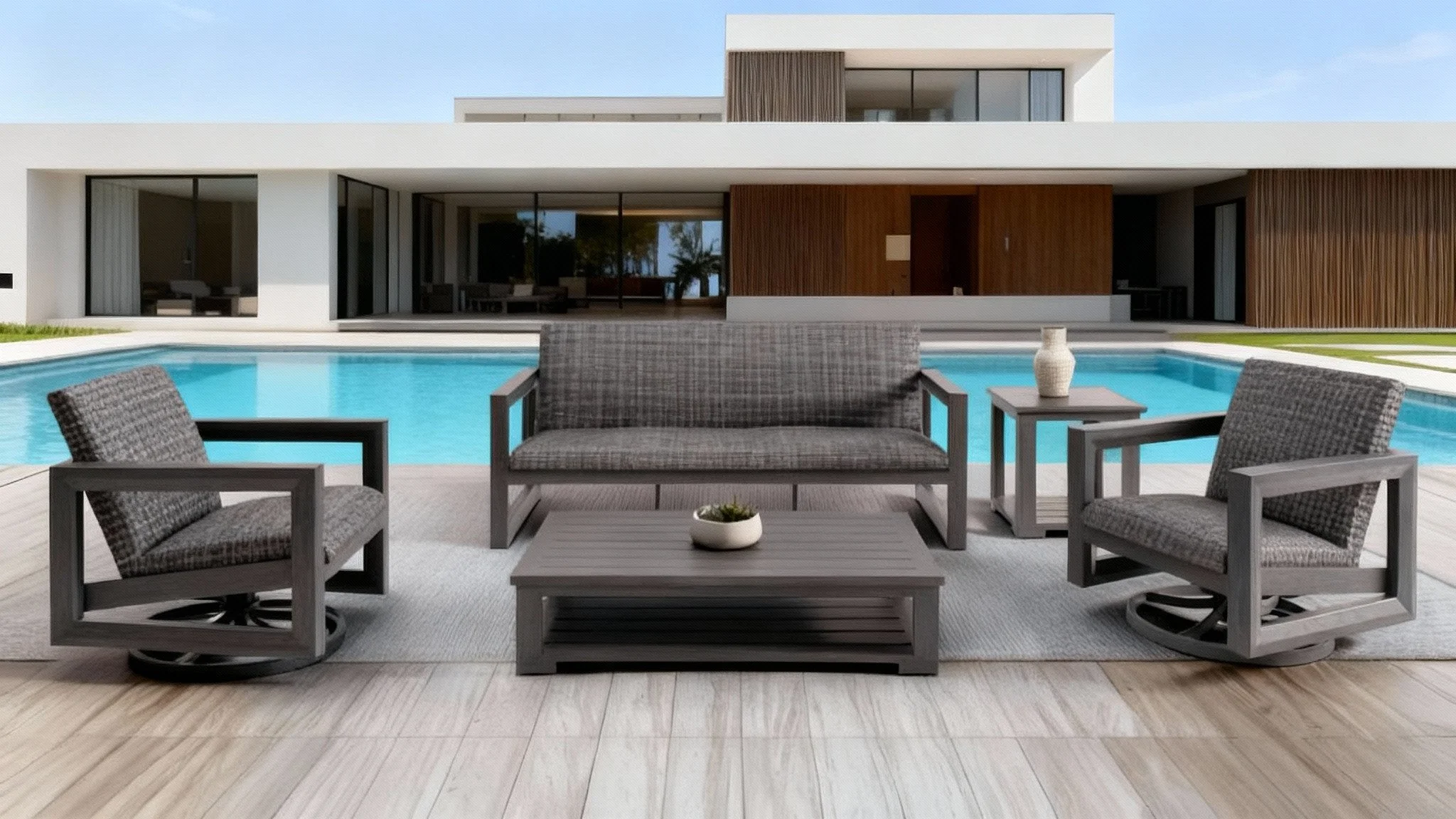 Hand-brushed aluminum in an Opal Finish pairs with Pewter WEAVE for a soft, grounded aesthetic. Slanted backs, inward-dropping seat panels, and reticulated foam padding offer lasting comfort without the need for cushions. With a mirrored frame design, special-shaped sled legs, and contract-grade durability, Bergen brings a sense of calm refinement to any outdoor setting.