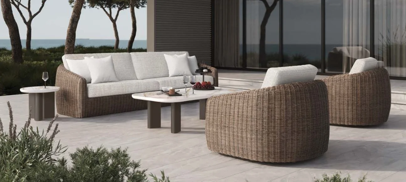Experience the refined ease of Hill Country living with the Boulevard Collection, available at Home & Patio. Hand-woven textures and cloud-soft cushions bring rustic sophistication to any space. Choose from three timeless finishes—Barley, Hazel, and Coal—and find your perfect fit: the standard sofa for intimate porches or the XL for open-air lounging. Built for all-weather durability and lasting comfort, every piece invites you to relax in effortless elegance from the very first sit