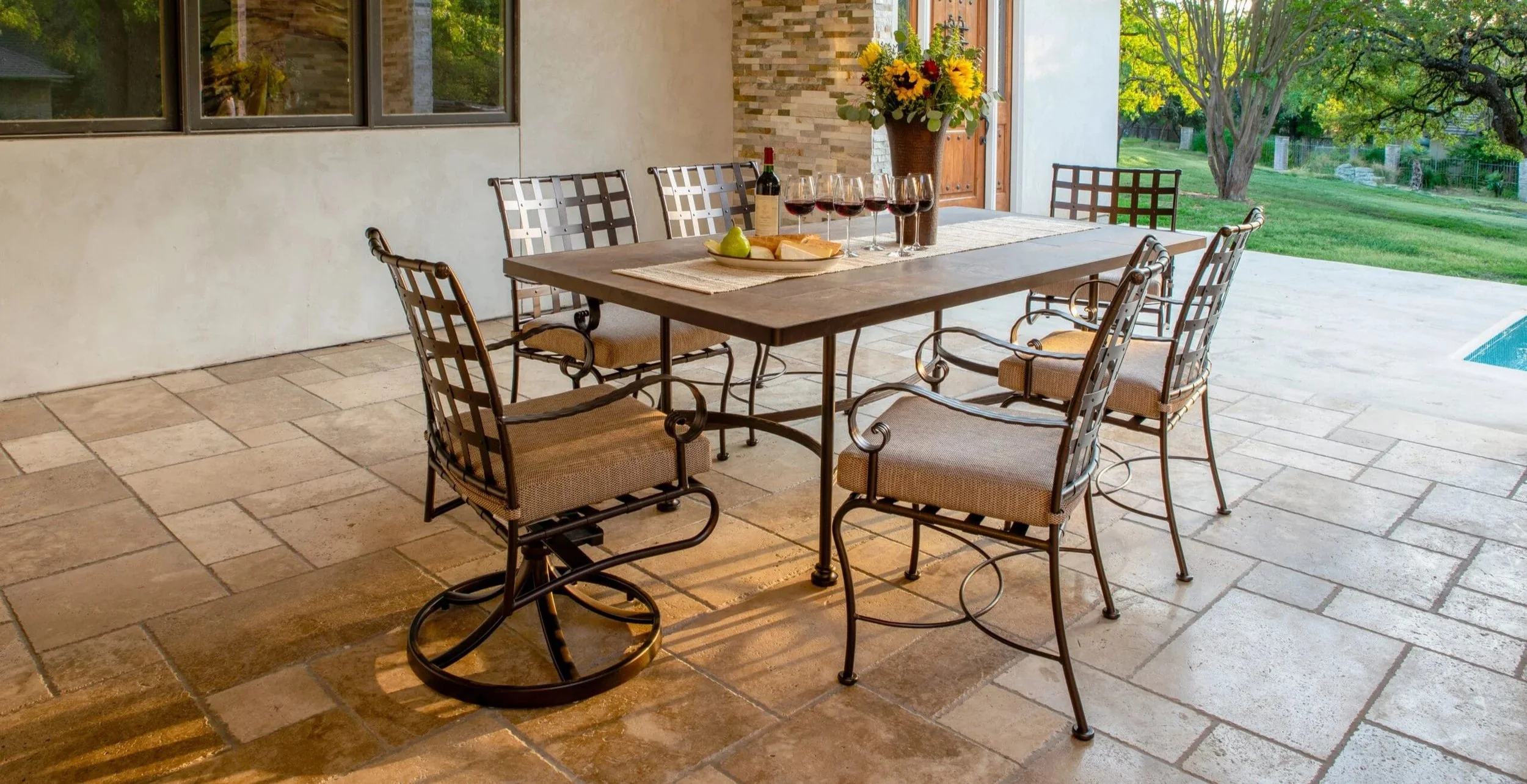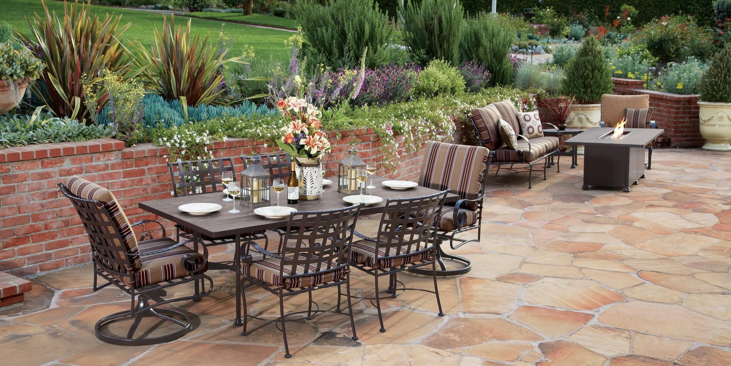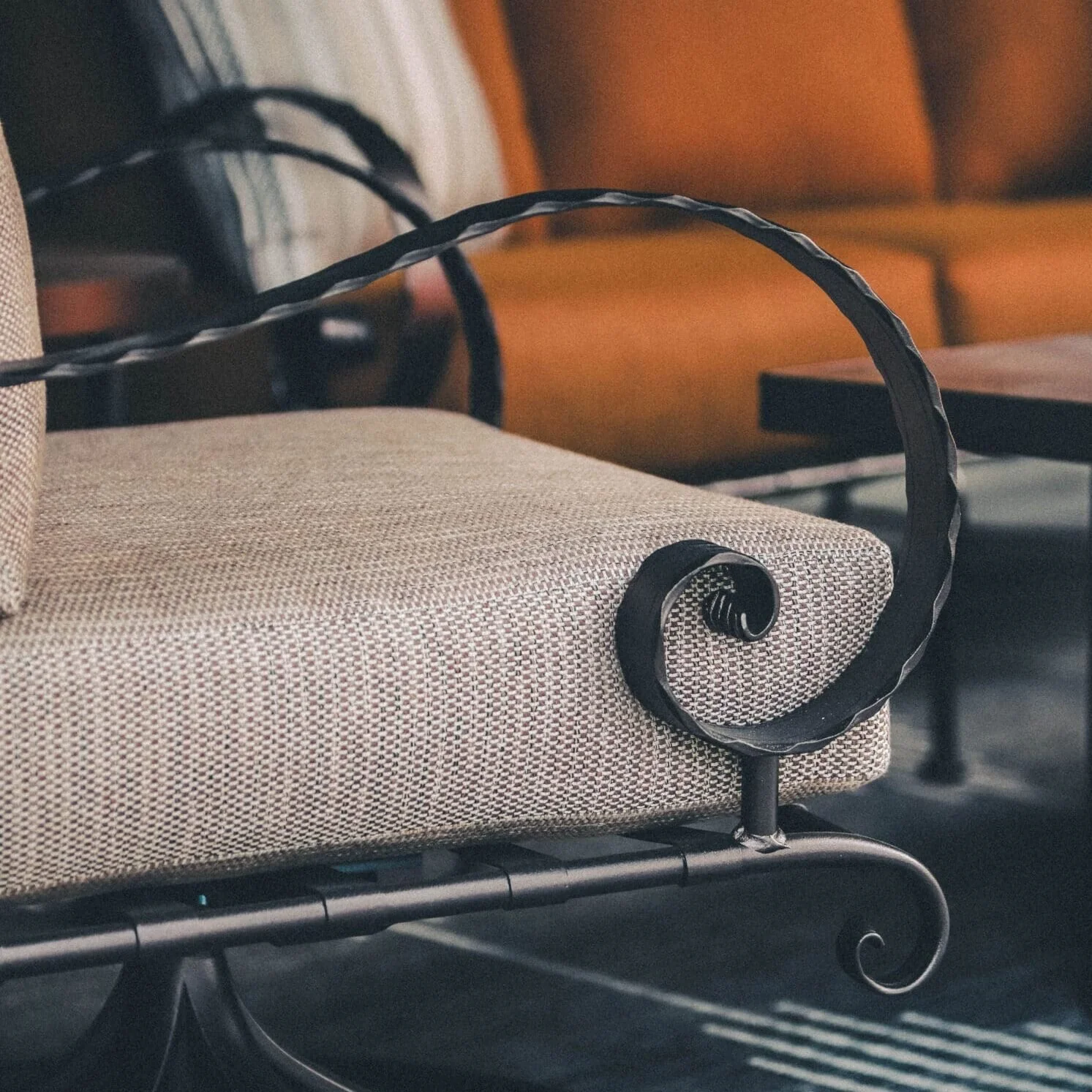 Classico offers extremely comfortable seating in traditional wrought iron. Galvanized steel strapping make up the seat and the back and decorative rivets connect the beautifully interwoven straps together. Arms made of embossed flat bar complement the galvanized steel frame. Classico is a full-line collection that features dining, deep seating, chaise lounge options, counter stools, and table bases. Additionally, Classico’s deep seating features Plush Comfort cushions.