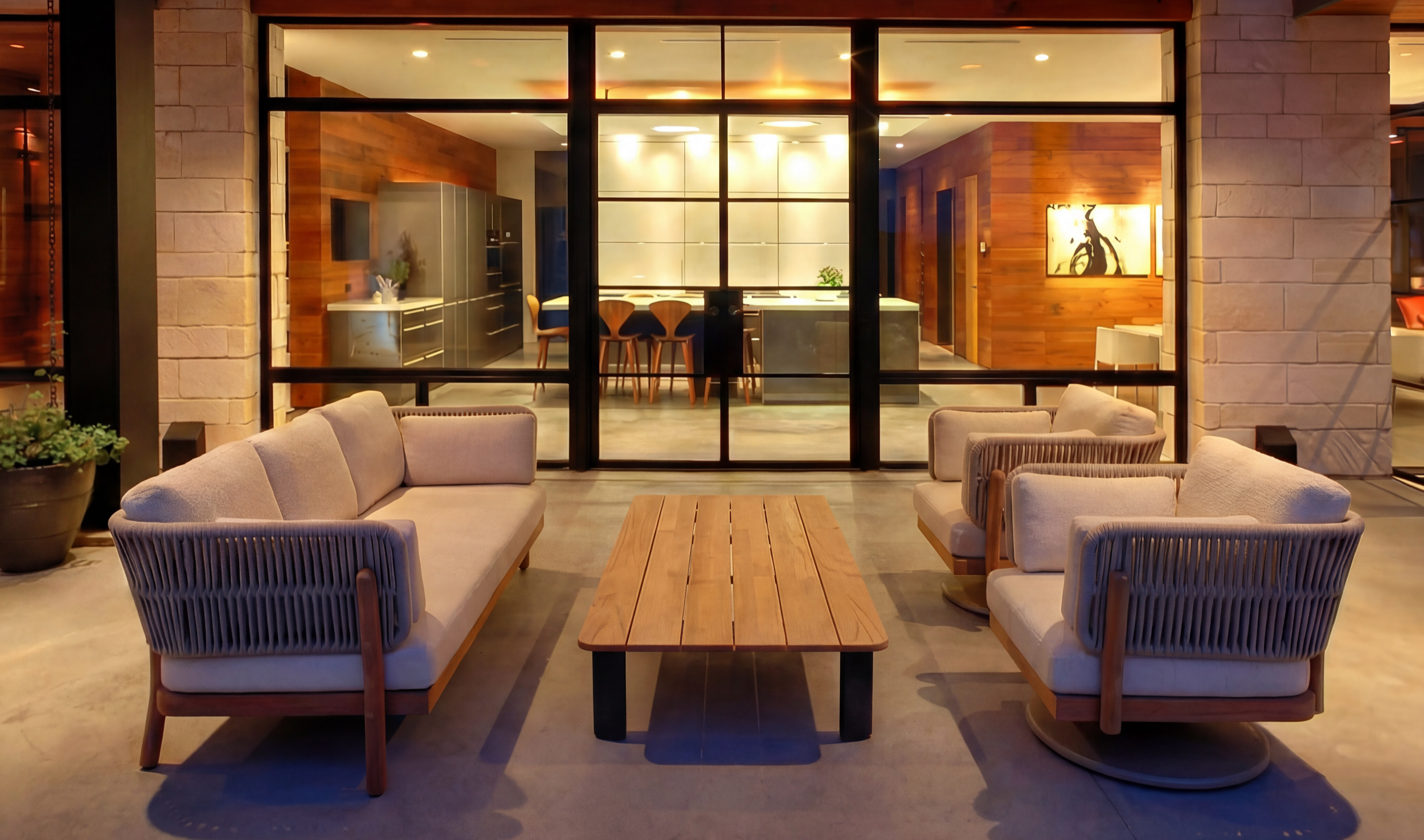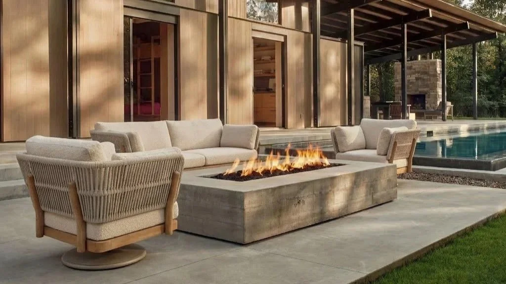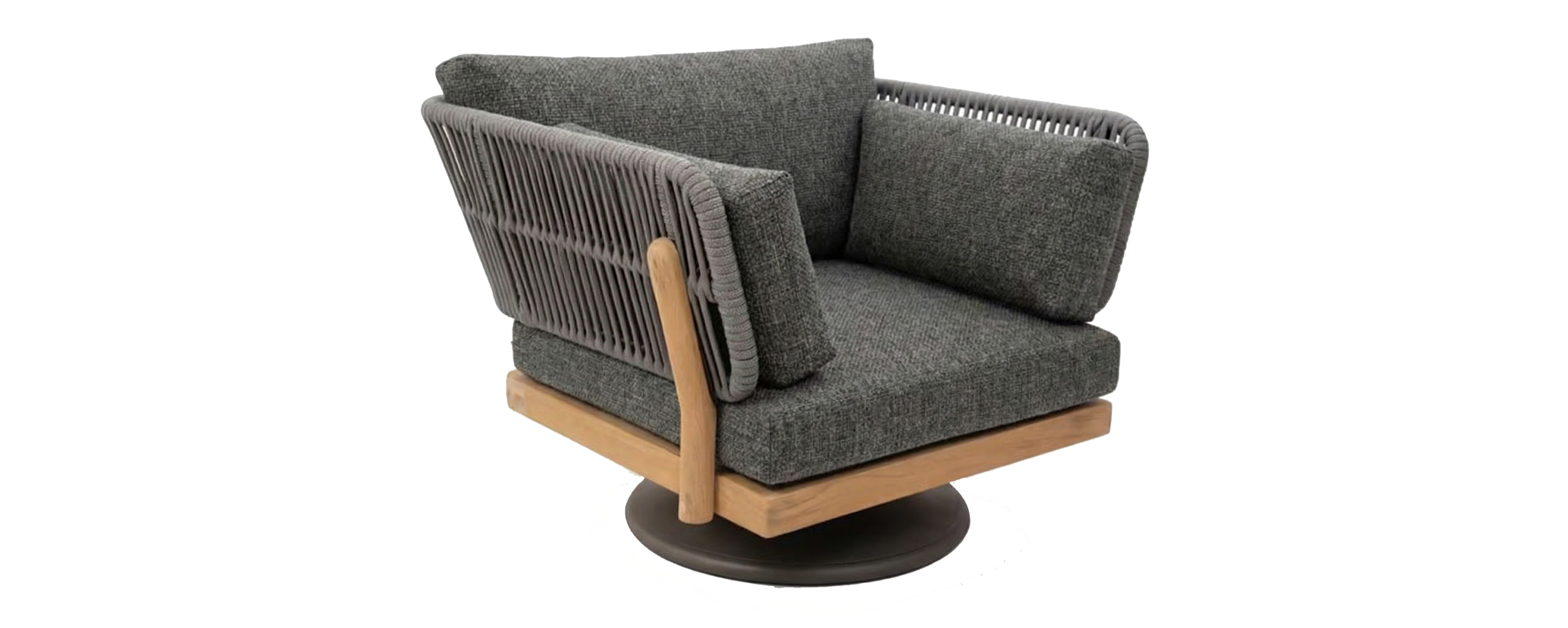 Strata by Loden blends extruded aluminum, teak, and rope for a sleek, modern look with comfort at its core. Designed with supportive multi-density foam, it offers both style and relaxation. Exclusive to Home & Patio, Strata is available in two colorways: Linen & Cloud or Charcoal & Slate.